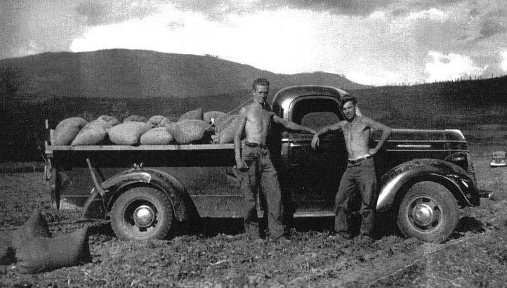 Sgt Ken French with his friend Bill Constable (who would later became an RCAF pilot) harvesting peas at home in Canada. (Photos Mr C. French, via Mr L. Green).