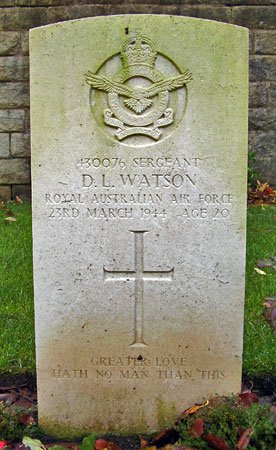 Bomb Aimer - Sgt David Lancaster Watson RAAF (430076), aged 20, of East St.Kilda, Victoria, Australia. Buried Harrogate Stonefall Cemetery, Yorkshire (F/E/3).