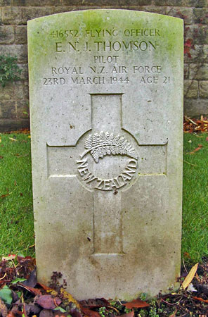 Pilot - F/O Edward Nigel Jeffreys Thomson RNZAF (NZ.416552), aged 21, Titirangi, Auckland, New Zealand. Buried Harrogate Stonefall Cemetery, Yorkshire (F/E/4).