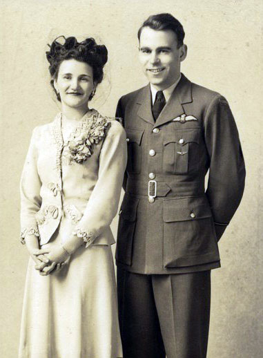 Joseph Kallal was born in Edmonton in October 1913 and was living in Tofield, Alberta and working as a farm labourer when he enlistedin Edmonton in March 1942. He received a commisison in 1943. He too was posted to 425 Squadron and was awarded the DFC, Gazetted on 16th January 1945. The recommendation dated 13th October 1944 when he had flown thirty four operational flights (156 hours flying time) reads.."An outstanding navigator of a Halifax bomber and of exceptional ability, Flying Officer Kallal has recently completed a tour of operations over enemy territory. His crew have bombed successfully such heavily defended targets as Hamburg, Kiel, Castrop-Rauxel, Wanne Eickel, Bottrop, Sterkrade and Dortmund. Flying Officer Kallal has acted in fact, if not officially, as captain of his aircraft throughout his operational tour, and his capable leadership has inspired his crew with confidence. His skill, courage and constant determination to attack with absolute precision have set a fine example to the squadron and his efficiency as a navigator on more than one occasion has been responsible for saving the lives of the crew. This officer has shown dogged determination and keenness at all times. His outstanding gallantry is worthy of high praise." He died in Tofield, Alberta, Canada in July 2005.
