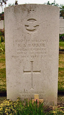 Flight Engineer - Sgt Bernard Andrew Barker RAFVR (1392337), aged 22, of Norbury, Surrey. Buried Fulford Cemetery, York (2/J/3).