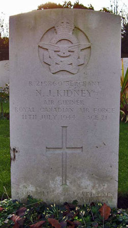 Mid Upper Gunner - Sgt Neil John Kidney RCAF (R/215860), aged 21, of Fort William, Ontario, Canada. Buried Harrogate Stonefall Cemetery, Yorkshire (B/H/16).