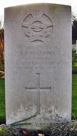 Rear Gunner - Sgt Raymond Frank Simmons RCAF (R/173565), aged 22, of Hamilton, Ontario, Canada. Buried Harrogate Stonefall Cemetery, Yorkshire (B/H/17).
