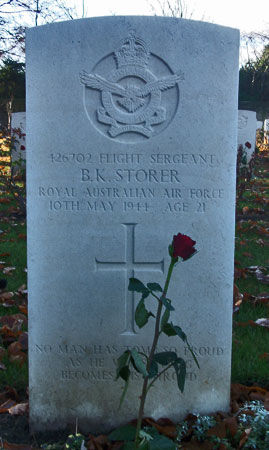 Bomb Aimer - F/Sgt Bernard Kevin Storer RAAF (426702), aged 21, of Maryborough, Queensland, Australia. Buried Harrogate Stonefall Cemetery, Yorkshire (B/C/3).
