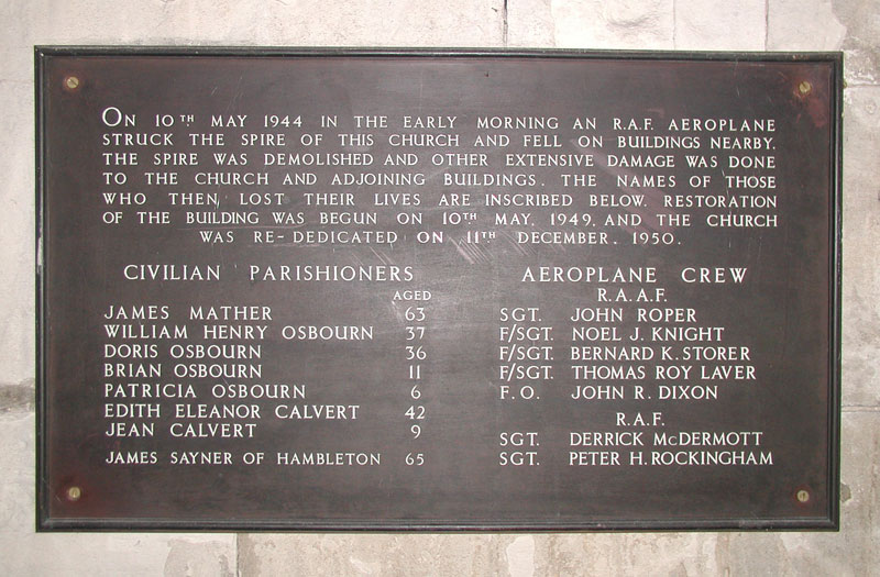 On 1st November 1953 a memorial plaque was unveiled in St.James Church, Selby and a seventieth anniversary service was held in the church in 2014. I strongly suspect that there are still many people in the Selby area who recall the events of this night, this account may not be as complete as it could be and I welcome any addition, correction or input from anyone who was there.