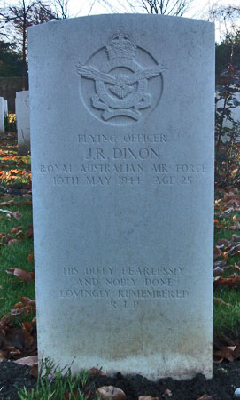 Air Gunner - F/O John Russell Dixon RAAF (434607), aged 25, of Eagle Junction, Queensland, Australia. Buried Harrogate Stonefall Cemetery, Yorkshire (B/C/4).