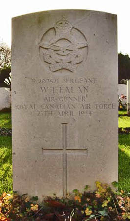 Rear Gunner - Sgt Ward Thomas Falan RCAF (R/207621), aged 21, of Collins Bay, Ontario, Canada. Buried Harrogate Stonefall Cemetery, Yorkshire.