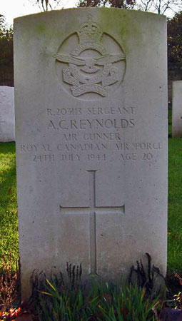 Air Gunner - Sgt Albert Chalmers Reynolds RCAF (R/203113), aged 20, of Tweed, Ontario, Canada. Buried Harrogate Stonefall Cemetery, Yorkshire (B/K/8).