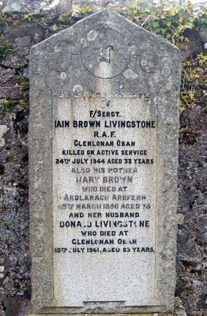 Flight Engineer - Sgt Iain Livingstone RAFVR (1895678), aged 33, of Glenlonan, Oban, Argyll & Bute, Scotland. Buried Pennyfuir Cemetery, Oban.
