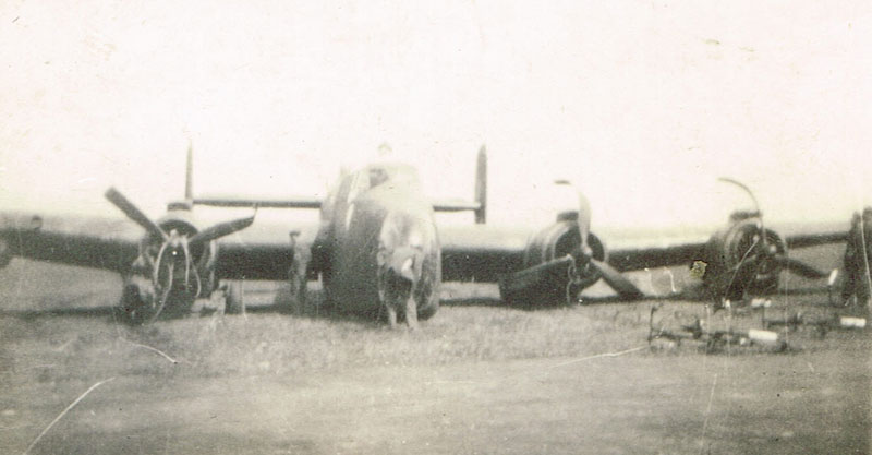 At 22.09hrs on the evening of the 28th June 1944 this 432 Squadron aircraft took off from East Moor airfield to undertake an operational flight to bomb marshalling yards at Metz but whilst on the climb-out it suffered a failure of the port inner engine. The crew carried out bomb-dumping procedures in the North Sea and returned on three engines to East Moor where the aircraft landed at 00.22hrs on 29th June 1944. A swing developed and it left the runway and ended up on it's belly. The photograph shown above shows a Halifax on it's belly at East Moor around the same date as LK766's mishap and could well be Halifax LK766. I thank Mrs Mary Ann Bourassa for this photograph, her father being the photographer.