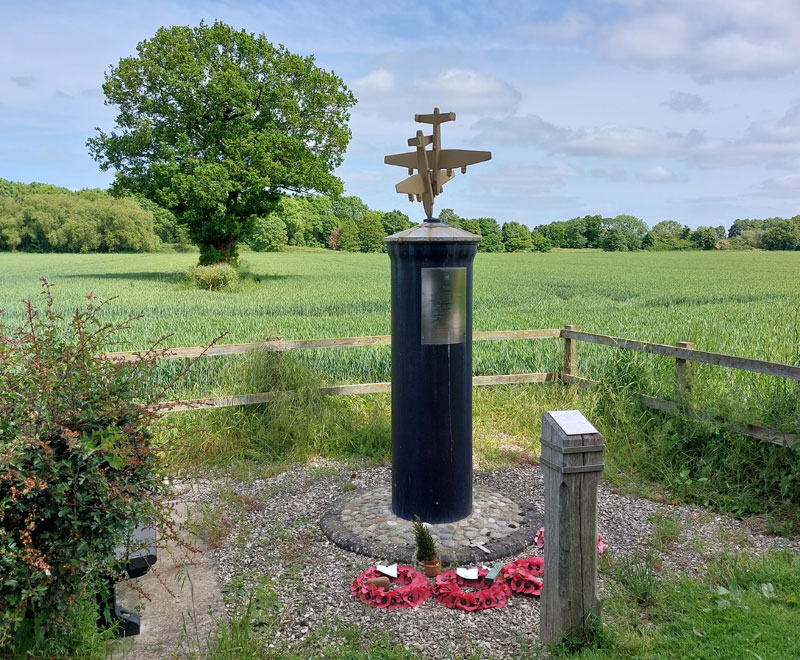 A memorial was dedicated close to the crash sites on 15th October 2006 with the local parson Rev.Poskitt officiating. Around New Years Eve in 2007 a local man was metal detecting the field where the aircraft crashed and found a sizeable unexploded bomb which resulted in local roads being closed when the bomb detonated by the Army Bomb Disposal Unit. This bomb was almost certainly an un-released bomb that was still on board one of the aircraft when it crashed.
