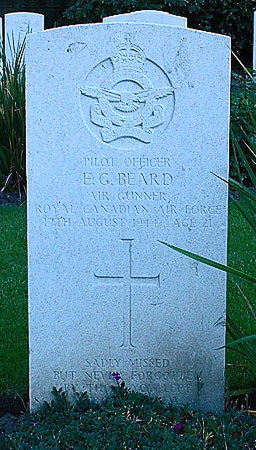 Air Gunner - P/O Edwin George Beard RCAF (J/89967), aged 21, of Lethbridge, Alberta, Canada. Buried Harrogate Stonefall Cemetery, Yorkshire (E/B/5).