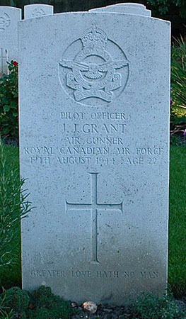 Air Bomber - P/O John Joseph Grant RCAF (J/89906), aged 22, of Vancouver, British Columbia, Canada. Buried Harrogate Stonefall Cemetery, Yorkshire (E/B/4).