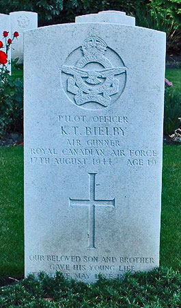 Air Gunner - P/O Keith Thomas Bielby RCAF (J/89968), aged 19, of Kelfield, Saskatchewan, Canada. Buried Harrogate Stonefall Cemetery, Yorkshire (E/B/6).