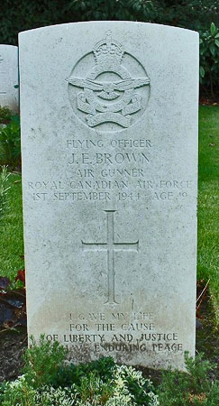 Rear Gunner - F/O James Ernest Brown RCAF (J/42283), aged 19, of Wichita, Kansas, USA. Buried Harrogate Stonefall Cemetery, Yorkshire (E/C/20). Died 1st September 1944.
