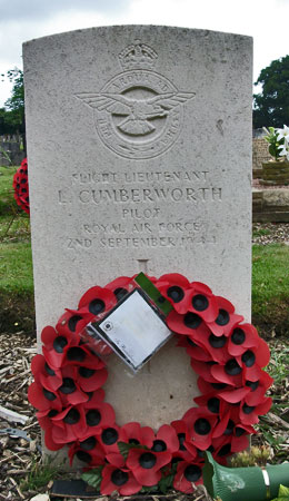 Pilot - F/Lt Leslie Cumberworth RAFVR (120434), aged 22. Buried Queensgate Cemetery, Beverley, Yorkshire (73/2).
