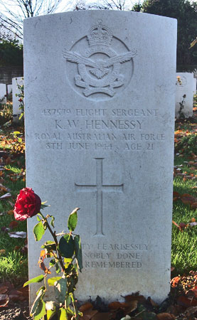 Air Gunner? - F/Sgt Kevin William Hennessy RAAF (437579), aged 21, of Oakleigh, Victoria, Australia. Buried Harrogate Stonefall Cemetery, Yorkshire (B/E/11).