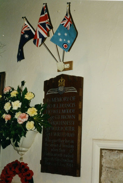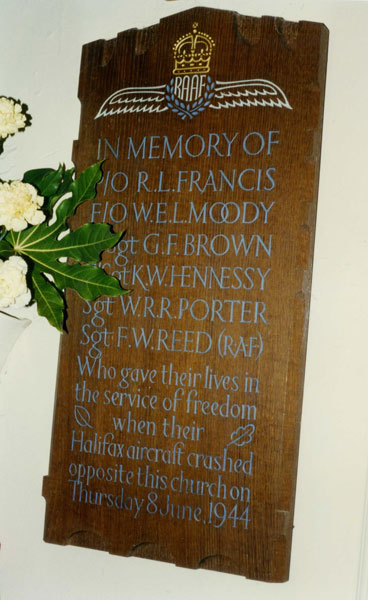 A memorial to crew who were killed in this accident was dedicated in St.Mary the Virgin Church, Hook. I credit Eric Barton with these two photographs.