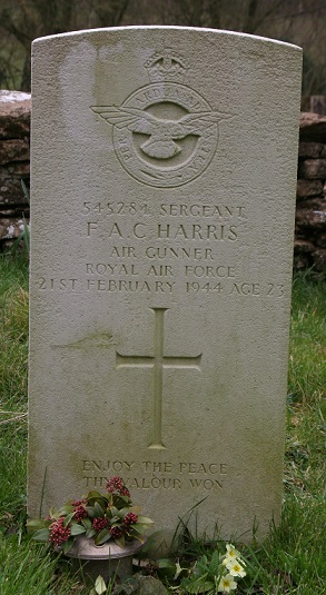 Air Gunner - Sgt Frank Albert Charles Harris RAF (545284), aged 23, of West Kington. Buried West Kington Churchyard, Wiltshire.