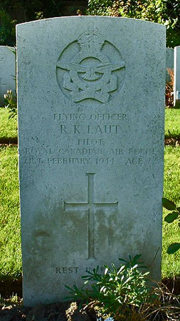 Pilot - F/O Ross K. Laut RCAF (J/22723), aged 22, of Crossfield, Alberta, Canada. Buried Harrogate Stonefall Cemetery, Yorkshire (F/A/19).