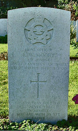 Bomb Aimer - P/O Roy William Moody RCAF (J/87165), aged 20, of Point St.Charles, Montreal, Quebec, Canada. Buried Harrogate Stonefall Cemetery, Yorkshire (F/A/18).
