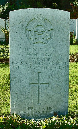 Navigator - F/O William Norman Hegy RCAF (J/20660), aged 23, of Airdrie, Alberta, Canada. Buried Harrogate Stonefall Cemetery, Yorkshire (F/A/17).