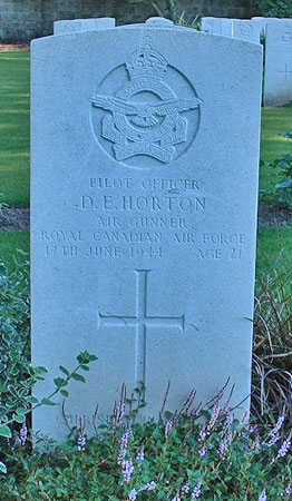 Rear Gunner - P/O Donald Ellsworth Horton RCAF (J/86837), aged 21, of Milestone, Saskatchewan, Canada. Buried Harrogate Stonefall Cemetery, Yorkshire (B/G/2).