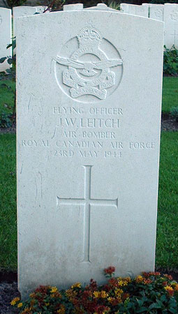 Bomb Aimer - F/O John William Leitch RCAF (J/89918), aged 30, of Winnipeg, Manitoba, Canada. Buried Harrogate Stonefall Cemetery, Yorkshire (B/D/2).