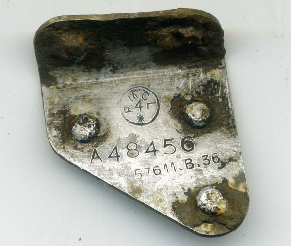 By permission of the landowner, historians Ken Reast, Albert Pritchard and Eric Barton located small pieces of the aircraft on the surface at the crash site in July 2000 to confirm the location. The photograph above shows one of the items found and it gives an excellent example of a Halifax part number A crater was still in existance in the field until around 2005 as it shows up on Google Earth imagery but now appears to have been filled in and ploughed over. The "Aircrewremembered.com" website gives an excellent account of this incident.