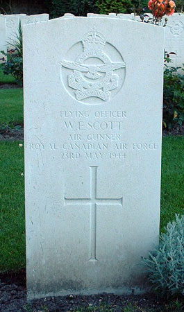 Air Gunner - F/O William Earl Scott RCAF (J/29485), aged 31, of Campbellton, New Brunswick, Canada. Buried Harrogate Stonefall Cemetery, Yorkshire (B/D/5).