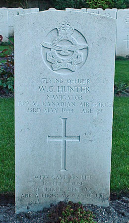 Navigator - F/O William George Hunter RCAF (J/25758), aged 29, of Winnipeg, Manitoba, Canada. Buried Harrogate Stonefall Cemetery, Yorkshire (B/D/4).