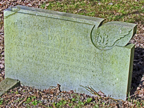Navigator - F/O David Lillington RAFVR (151193), aged 20, of Ruislip. Buried Ruislip Churchyard, Middlesex.
