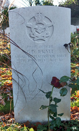 Pilot - P/O George Donaldson Jekyll RAAF (405914), aged 30, wife of Dalby, Queensland, Australia. Buried Harrogate Stonefall Cemetery, Yorkshire (B/F/8).