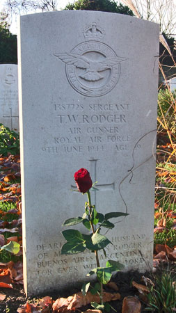 Air Gunner - Sgt Thomas Walker Rodger RAFVR (1387728), aged 29, wife of Olivos, Buenos Aires, Argentina. Buried Harrogate Stonefall Cemetery, Yorkshire (B/F/7).