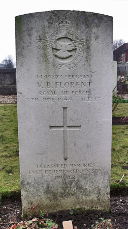 Flight Engineer - Sgt Vivian Bertram Florent RAFVR (1449273), aged 23, of Regents Park, London. Buried Pocklington Burial Ground, Yorkshire.