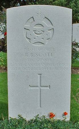 Mid Upper Gunner - P/O Robert Burns Scott RCAF (J/93090), aged 20. Of Horizon, Saskatchewan, Canada. Buried Harrogate Stonefall Cemetery, Yorkshire (G/A/13).