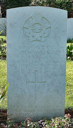 Air Gunner - Sgt Bernard Downey RCAF (R/183176), aged 23, of Doyles, Great Codroy, Newfoundland. Buried Harrogate Stonefall Cemetery, Yorkshire (F/A/5).