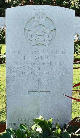 Wireless Operator / Air Gunner - WO1 Lloyd Leslie Whale RCAF (R/93150), aged 25, of Toronto, Ontario, Canada. Buried Harrogate Stonefall Cemetery, Yorkshire (F/A/6)..