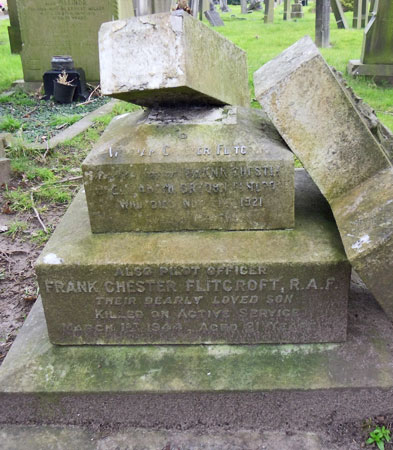 Navigator - P/O Frank Chester Flitcroft RAFVR (171865), aged 21, of Stockport. Buried Stockport Cemetery, Cheshire.