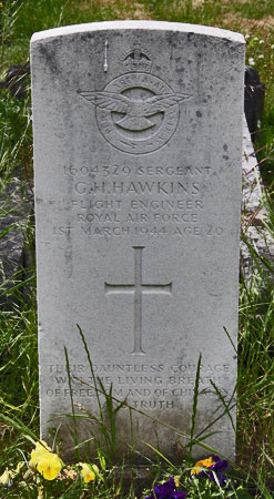 Flight Engineer - Sgt Geoffrey Hamilton Hawkins RAFVR (1604329), aged 20, of Harrow. Buried Pinner Cemetery, Middlesex.