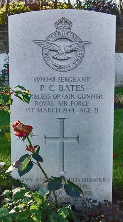 Wireless Operator / Air Gunner - Sgt Philip Charles Bates RAFVR (1391048), aged 21, of Blackheath, London. Buried Harrogate Stonefall Cemetery, Yorkshire (F/B/14).