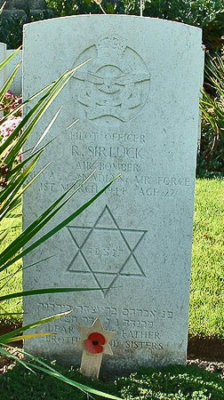 Bomb Aimer - P/O Robert Sirluck RCAF (J/86913), aged 22, of Winkler, Manitoba, Canada. Buried Harrogate Stonefall Cemetery, Yorkshire (F/B/16).