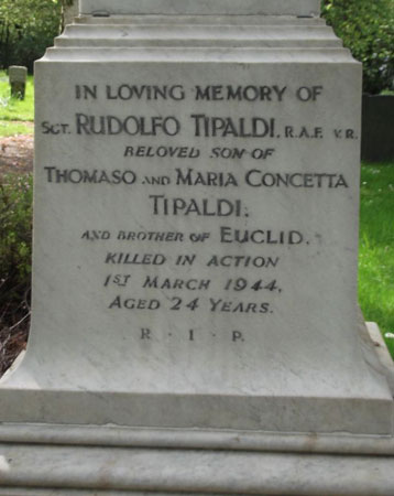 Air Gunner - Sgt Rudolph Tipaldi RAFVR (1822669), aged 24, of Corby. Buried Corby Cemetery, Northamptonshire.