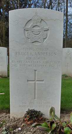 Bruce Anderson was born on 26th December 1917 in Toronto, Ontario, Canada and was the son of Benjamin Wellington and Margaret Ethel (nee Jackson) Anderson. As a young man he studied mechanical engineering at technical school and was working for Ontario Hydro as a draughtsman when he enlisted into the RCAF on 21st April 1942 in Toronto. After training in Canada he was awarded his Air Bomber's badge on 17th September 1943 and received a commission on the same date. He then left for service in the UK soon after and trained at 1 (O)AFU, 23 OTU and 1664 HCU before posting to 415 Squadron on 21st July 1944 with the rest of his crew.