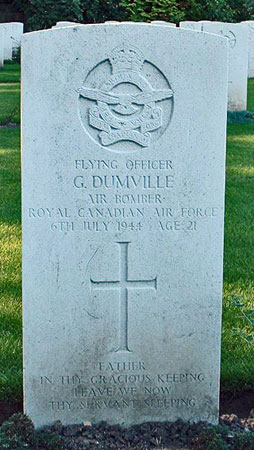 Bomb Aimer - F/O Gordon Dumville RCAF (J/28246), aged 21, of Rocanville, Saskatchewan, Canada. Buried Harrogate Stonefall Cemetery, Yorkshire (B/H/5).