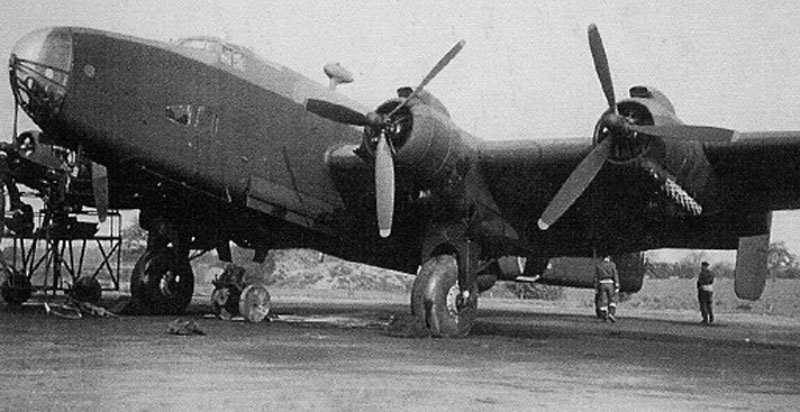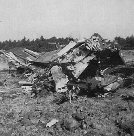 The photograph above is believed to show Halifax MZ657. On 6th July 1944 this 431 Squadron aircraft was to have undertaken an operational flight to bomb a V-1 flying bomb site at Biennais. At 01.24hrs as the aircraft picked up speed on the runway at Croft it swung to starboard. As the aircraft had left the centre line of the runway it now pointed towards a line of marshalled aircraft awaiting their turn to take off, because the speed was too great to then stop before these other aircraft, to avoid a collision the pilot pulled the aircraft into the air. The aircraft was not flying fast enough to remain in the air but the speed was great enough to allow it to leave the ground and clear the other aircraft on the perimeter track. Because it did not have the flying speed to remain airborne it then stalled and dropped back onto the ground, the undercarriage was torn off and it came to rest just off the northern boundary of the airfield and caught fire. The location given on a police report puts the site as being roughly between North Walmire and Vince Moor farms. The bomb aimer was stood next to the pilot at the time of taking off, because he was not strapped in he was thrown forward into the instrument panel sustaining serious head injuries that knocked him unconsious. Other members of the crew were injured to varing degrees. The bomb aimer and flight engineer were pulled out of the burning aircraft by the wireless operator but then one of the bombs on board exploded. Six of the crew were taken to Northallerton Hospital where the bomb aimer died a few hours later. Another member of the crew broke his arm. With the fire extinguished later in the day the bomb disposal team inspected the wreckage and found two long delay fuzed bombs and one further large bomb that had to be destroyed. Because of the size of the bombs and the proximity of farms people were evacuated from nearby homes while the bombs were detonated between 15.30hrs and 16.15hrs and some damage was done to buildings, fences, grain and trees in the immediate area.
