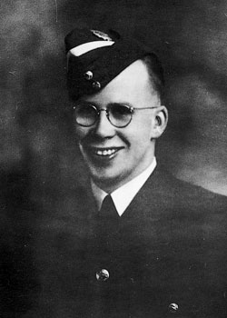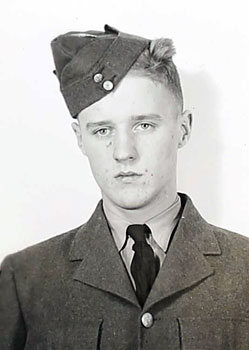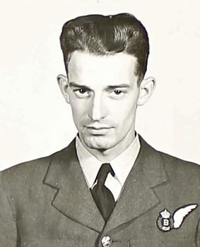 John Kerry was born on 30th August 1921 at Toronto, Ontario, Canada and was the son of George and Mary (nee Fitzsimmons) Kelly. Both his parents were born in Edinburgh, Scotland but had emigrated to Toronto. As a young man he worked for the Robert Simpson department store in Toronto. In 1940 he enlisted into the Canadian Army, joining the Irish Regiment of Canada. By late-1942 he was stationed at Camp Borden, Nova Scotia when he asked for a discharge to enlist into the RCAF. He enlisted into the RCAF at Halifax, Nova Scotia on 21st October 1942 and after training in Canada was awarded his air gunners' flying badge on 18th October 1943 after first gaining his wireless operators badge. He arrived in the UK by the end of 1943 and over the coming months trained at 9 (O)AFU, 24 OTU and 1664 HCU before posting to 408 Squadron on 15th June 1944.