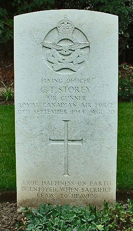 Air Gunner - F/O Charles Theodore Storey RCAF (J/38262), aged 20, of Outremont, Montreal, Quebec, Canada. Buried Harrogate Stonefall Cemetery, Yorkshire (E/D/13).