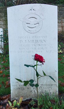 Flight Engineer - Sgt Douglas John Milburn RAFVR (1390244), aged 24, of Bexley, Kent. Buried Harrogate Stonefall Cemetery, Yorkshire (E/D/12).