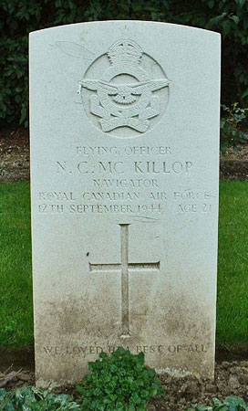 Navigator - F/O Norman Colin McKillop RCAF (J/24037), aged 21, of Moose Jaw, Saskatchewan, Canada. Buried Harrogate Stonefall Cemetery, Yorkshire (E/D/19). Died 12th September 1944 Northallerton Hospital.